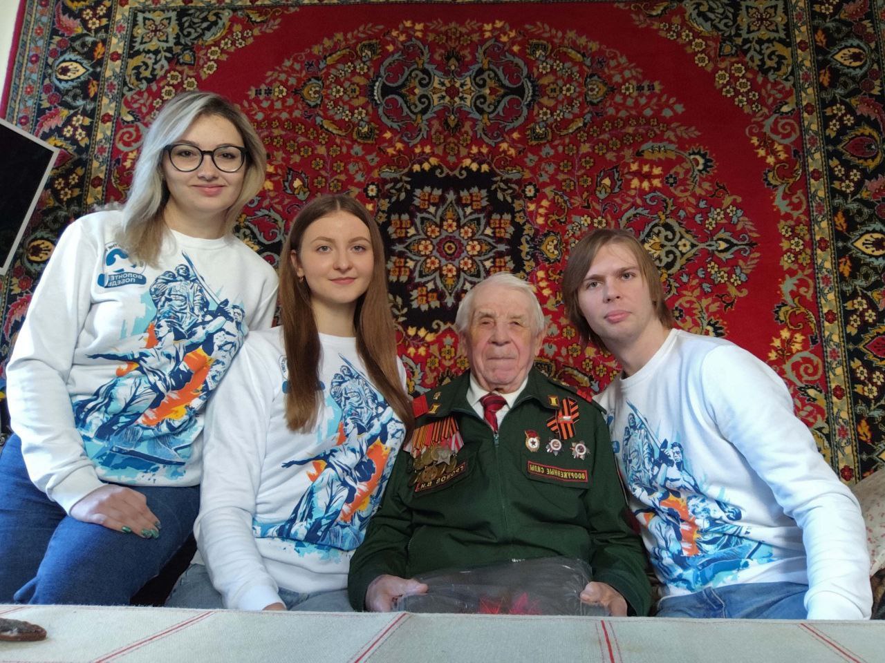 Ветерану вручили тёплый плед и праздничный набор, а также пообщались с ним и поздравили с праздником.