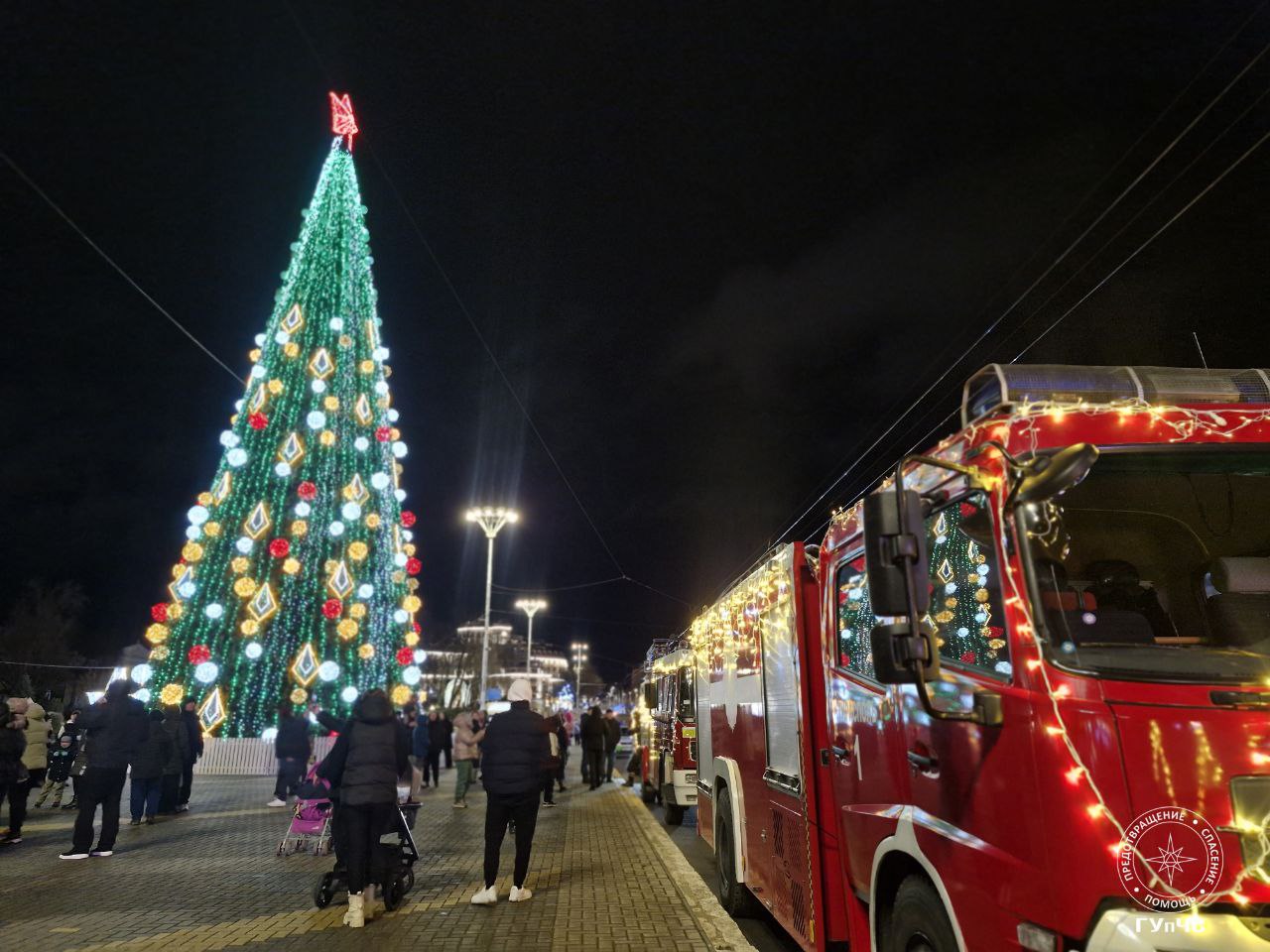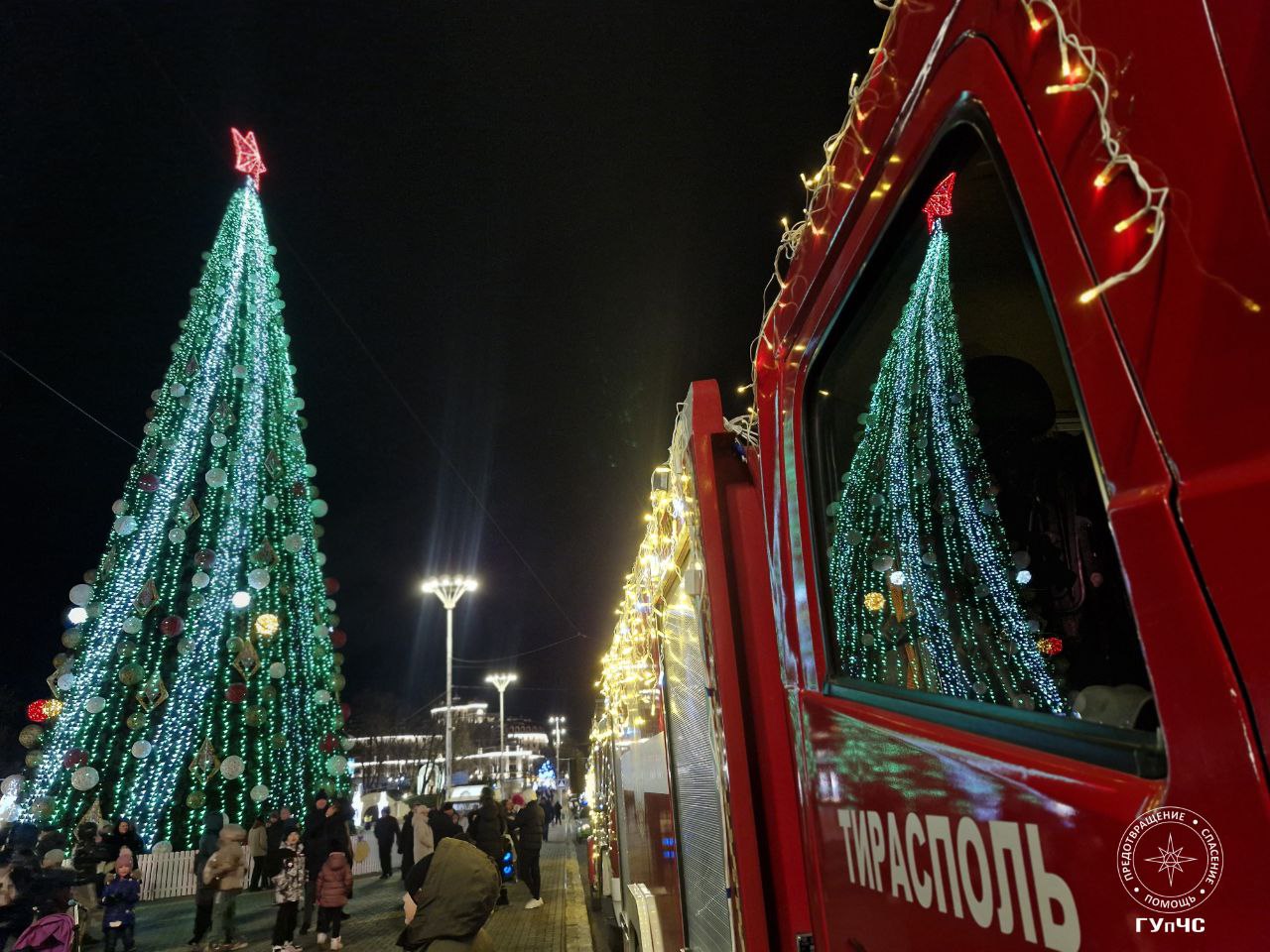 © Пресс-центр МВД ПМРНовогодний караван ГУпЧС мчит на всех порах в микрорайон Ленинский в Бендерах. © Пресс-центр МВД ПМР