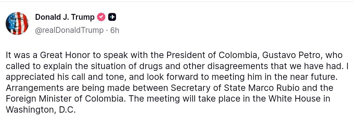 Я так понимаю, несмотря на все публичные заявления Петро Густаво, что Трамп хуже Гитлера и что он лично готов уходить в джунгли и сражаться до конца с американскими империалистами, кто-то его убедил, что самым правильным и логичным будет для него съездить в США и поговорить.
