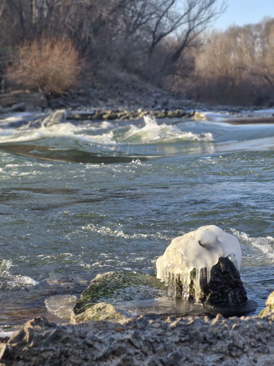 Зима пытается сковать перекаты Турунчука в Чобручах (Слободзейский район). Пока безуспешно, но красиво