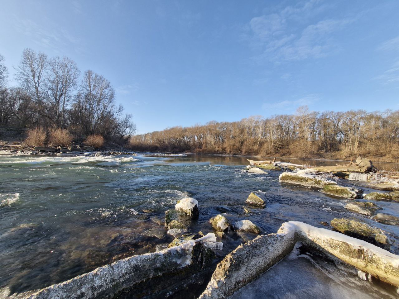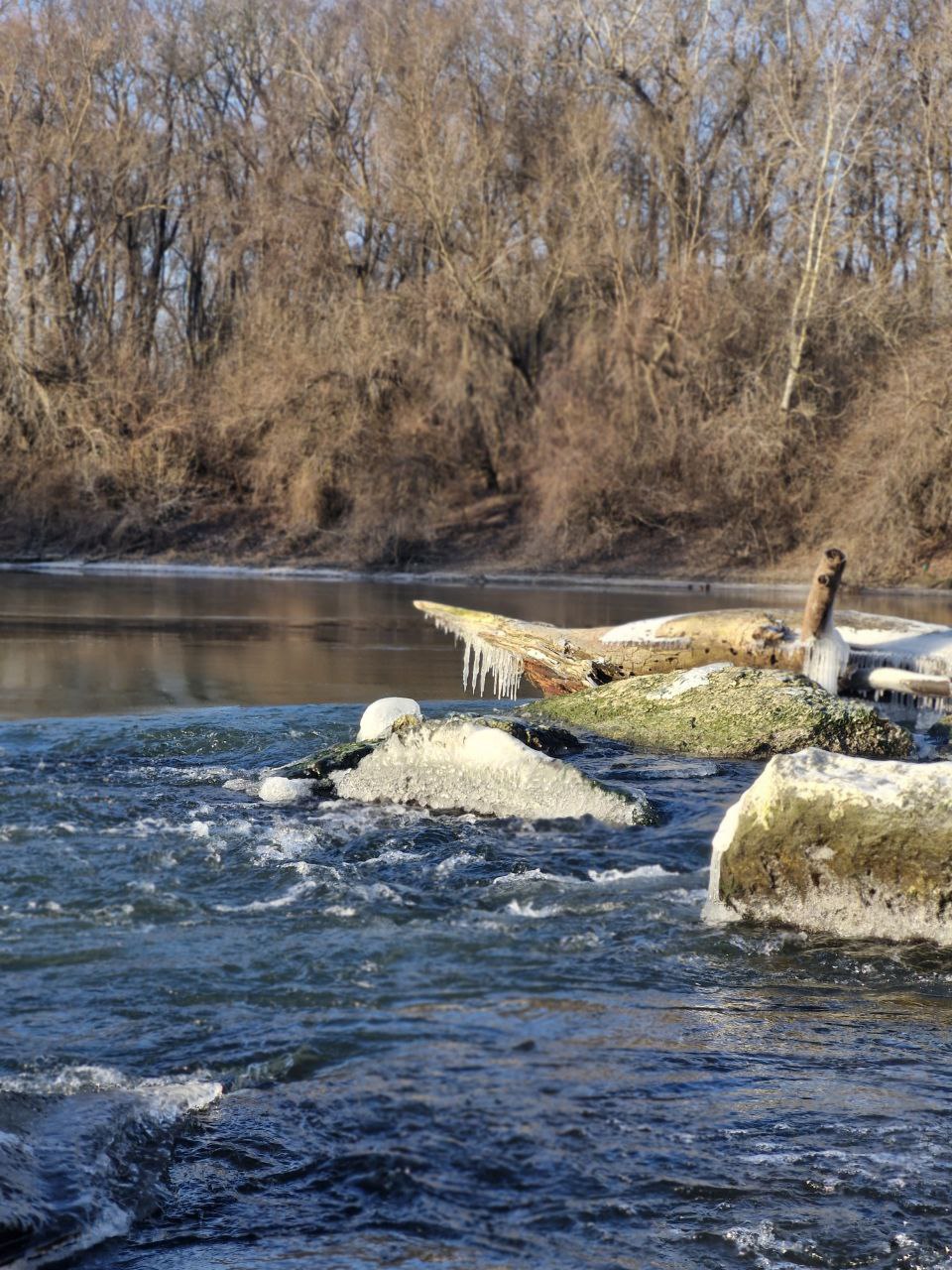 Зима пытается сковать перекаты Турунчука в Чобручах (Слободзейский район)