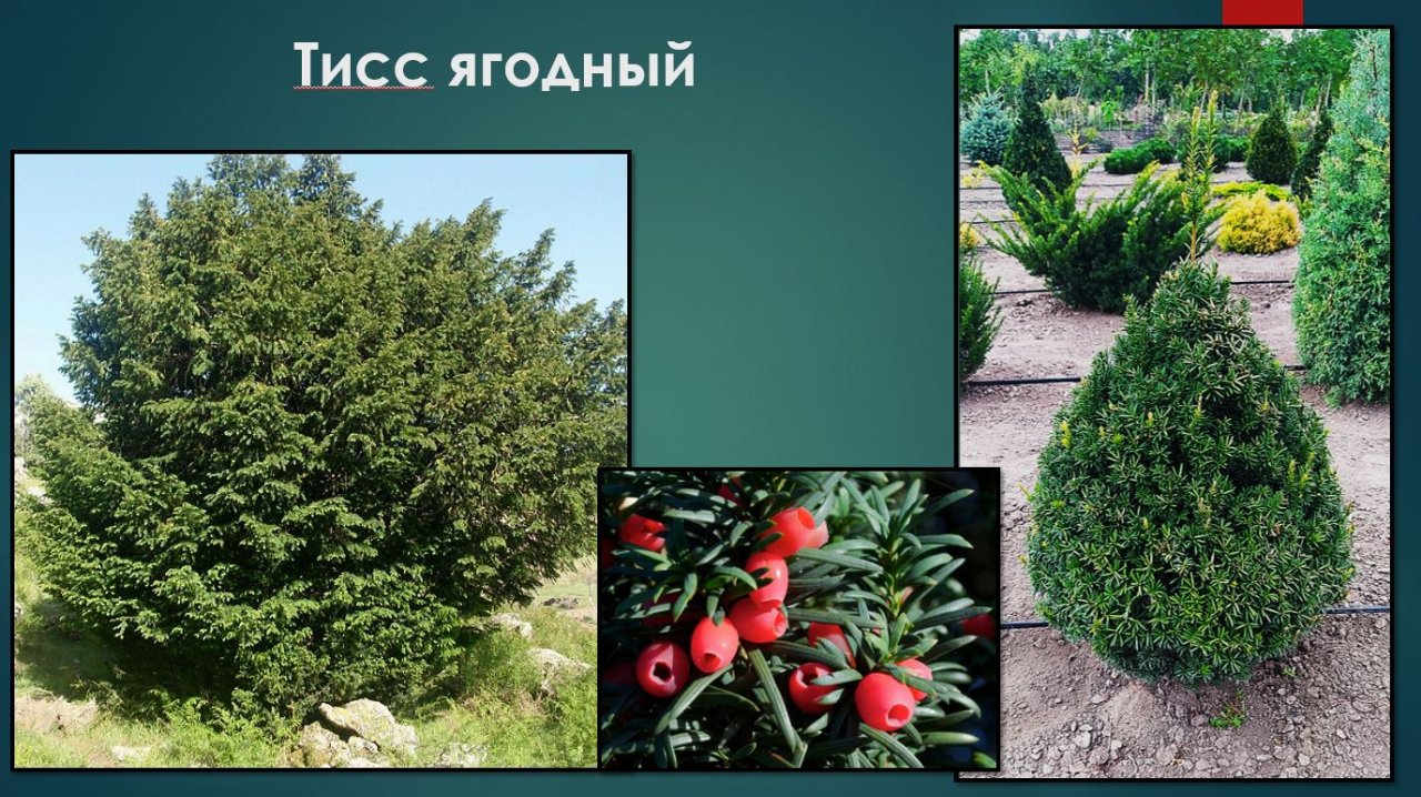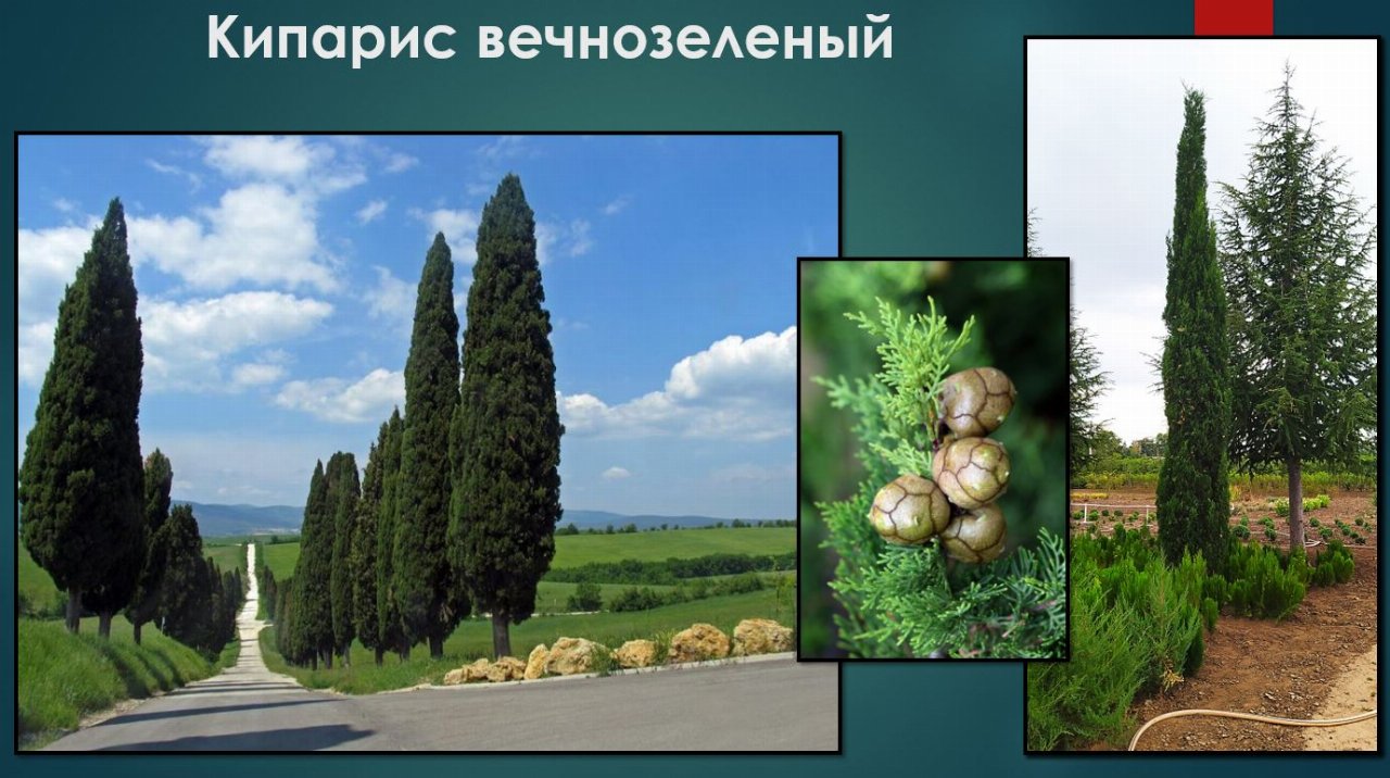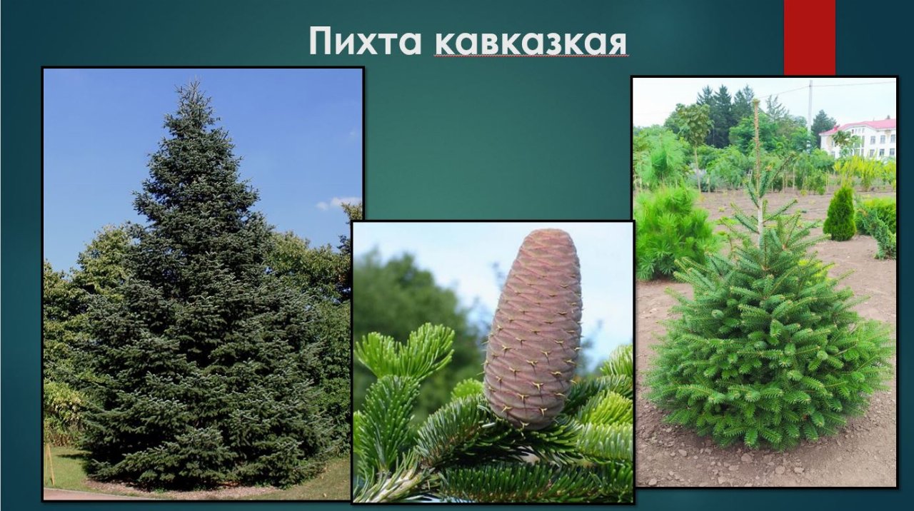 Среди них: пихта кавказская, кипарис вечнозеленый, тис ягодный, можжевельник средний.