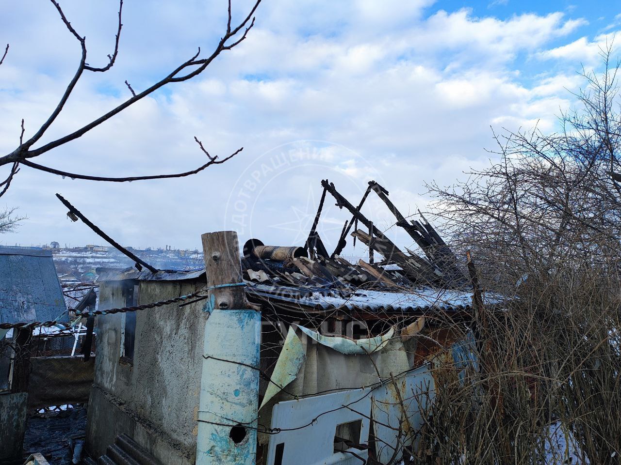 Жильцы соседних домов услышали треск шифера и вызвали пожарных. Площадь возгорания составила 35 кв. м. Пожарные потушили его за полчаса, дом полностью сгорел.
