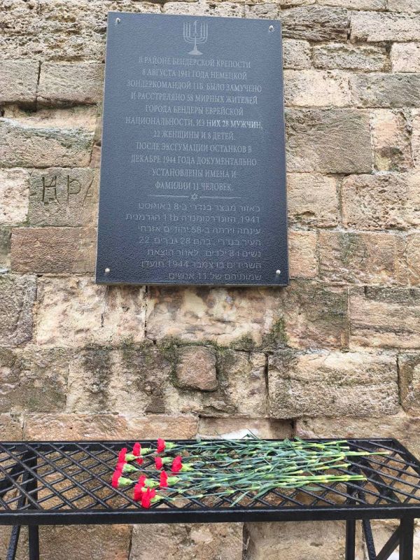 Цветы также возложили к мемориалу во рву Бендерской крепости, где были обнаружены расстрельные ямы. На месте трагедии, датируемой 1941 годом, установлен памятный знак.