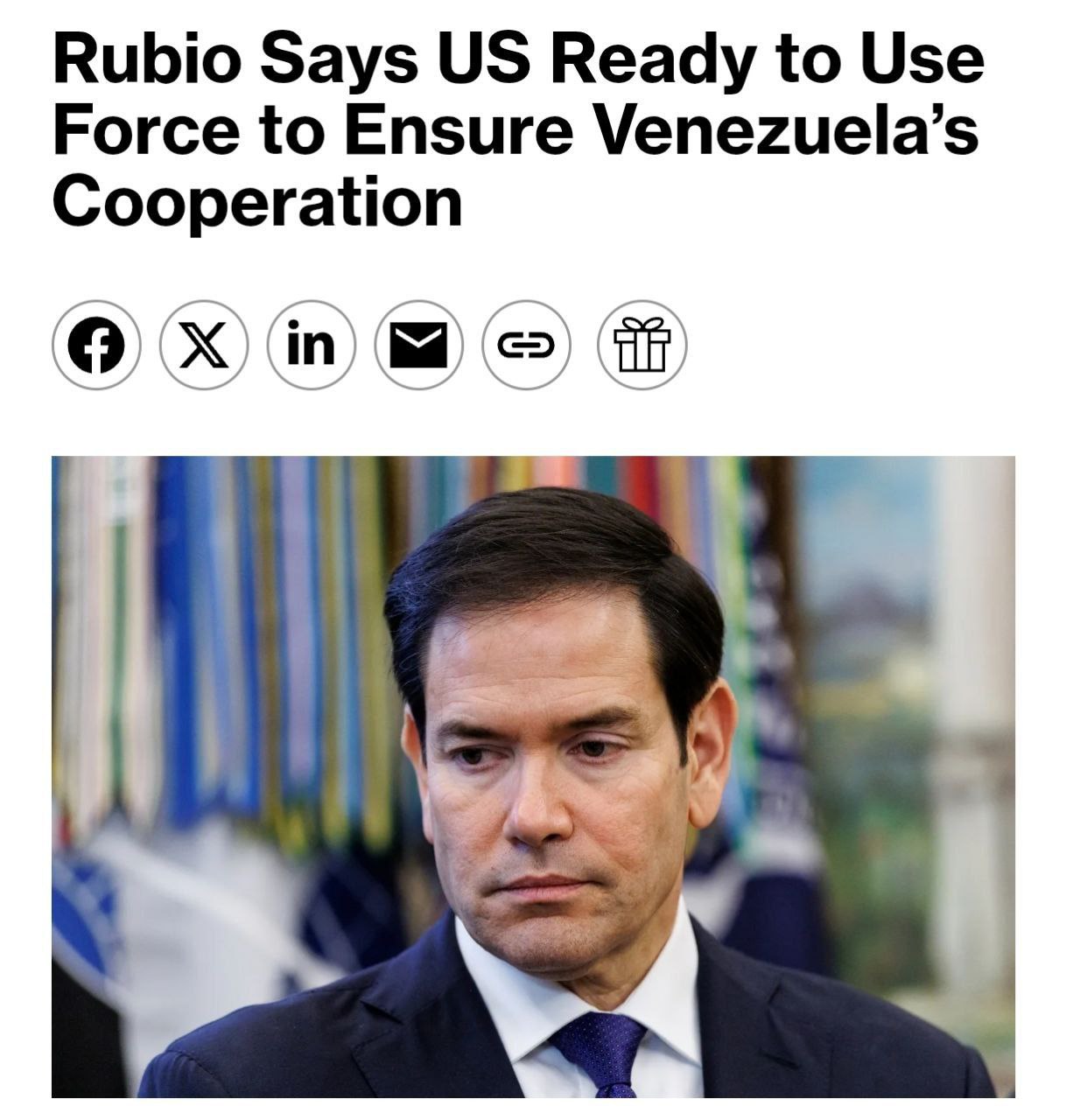 «Мы готовы применить силу, если другие методы окажутся неэффективными. Мы надеемся, что до этого не дойдет, но не откажемся от своего долга перед американским народом и нашей миссии в этом полушарии», — сказал Рубио.