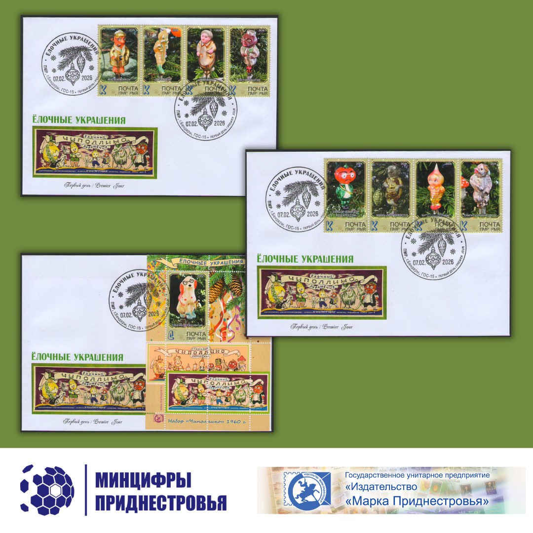 В декабре 2025 года была презентована первая серия марок «Елочные украшения» с изображением игрушек набора «Чиполлино».