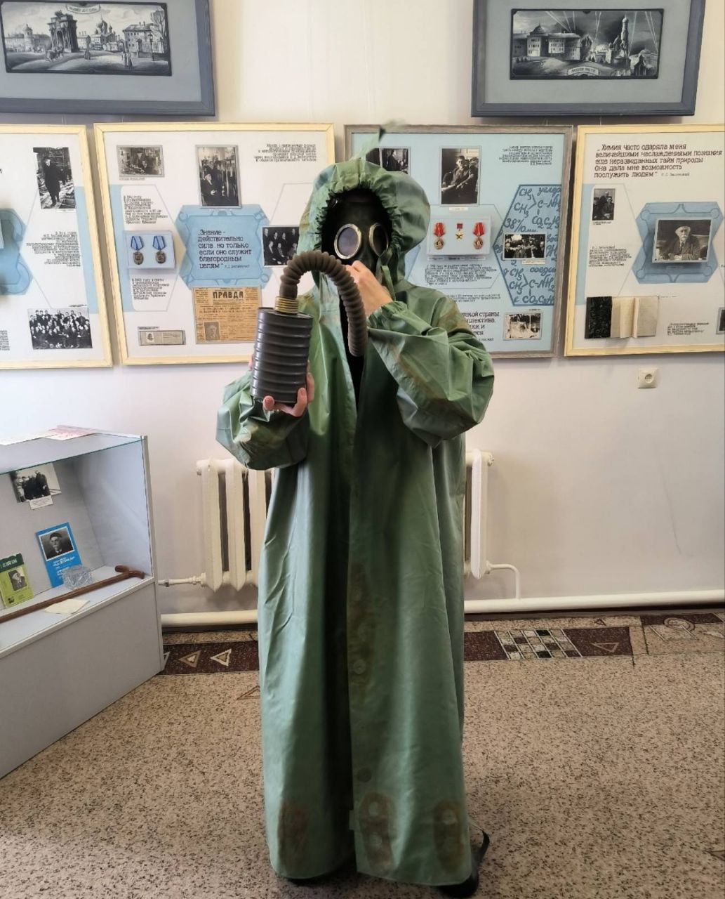 Экскурсия получилась захватывающей: ребята не только узнали о жизни великого химика-органика, но и примерили знаменитый противогаз вместе с костюмом химзащиты.