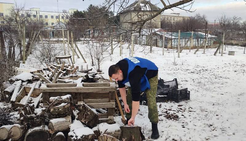 Добровольцы рубят дрова и приносят продукты. Накануне волонтёры помогли Марии Павленко. В 1992 году она участвовала в обеспечении защитников бронежилетами. Сейчас Мария Алексеевна живёт с дочерью — инвалидом первой группы — и особенно нуждается в помощи.