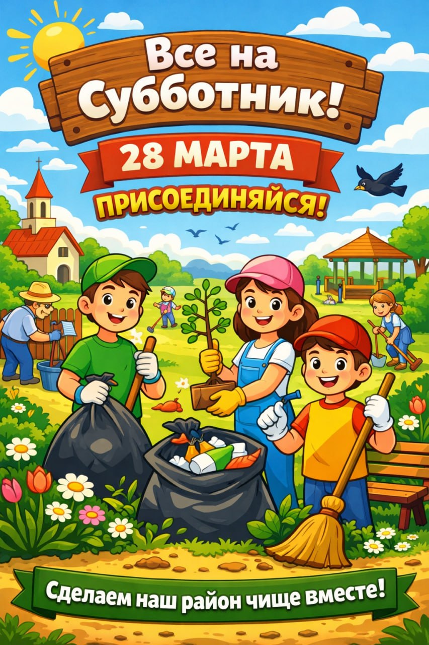 Уже завтра, 28 марта, во всех населённых пунктах района состоится республиканский субботник. В преддверии весенних праздников на центральных площадях, в парках, скверах и на улицах будут проводить работы по благоустройству.
