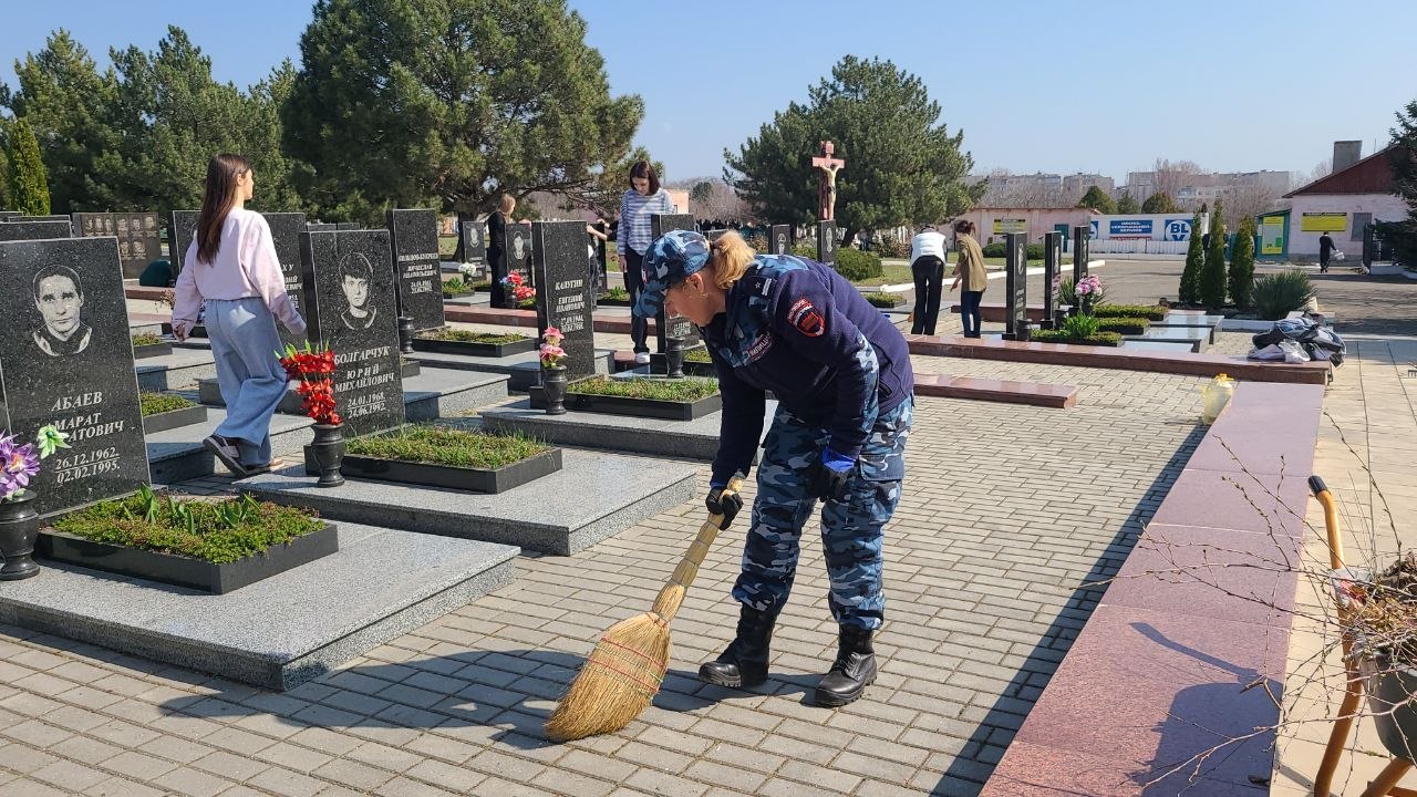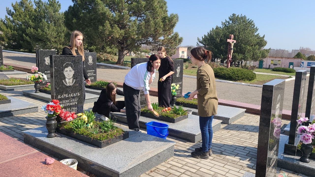 Работают на Аллее Славы: приводят в порядок могилы защитников Приднестровья, а также ветеранов Великой Отечественной войны и органов внутренних дел.