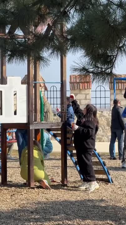 Красят скамейки и детский городок, высаживают деревья.
