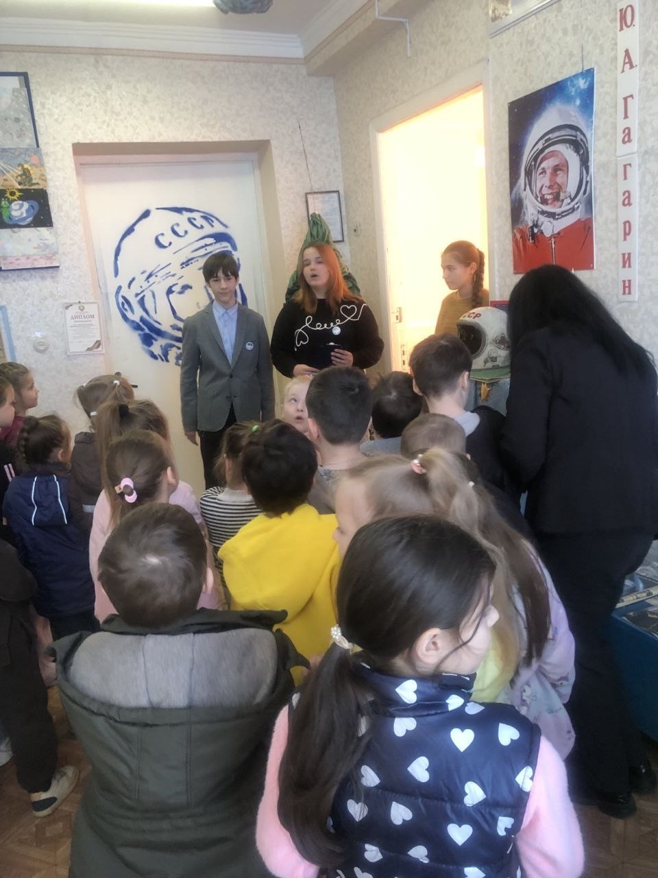 Также в преддверии 12 апреля волонтёры организовали акцию «65 лет космонавтики» — провели экскурсии в школьном музее Юрия Гагарина для младших классов. Школа носит имя первого космонавта Земли.
