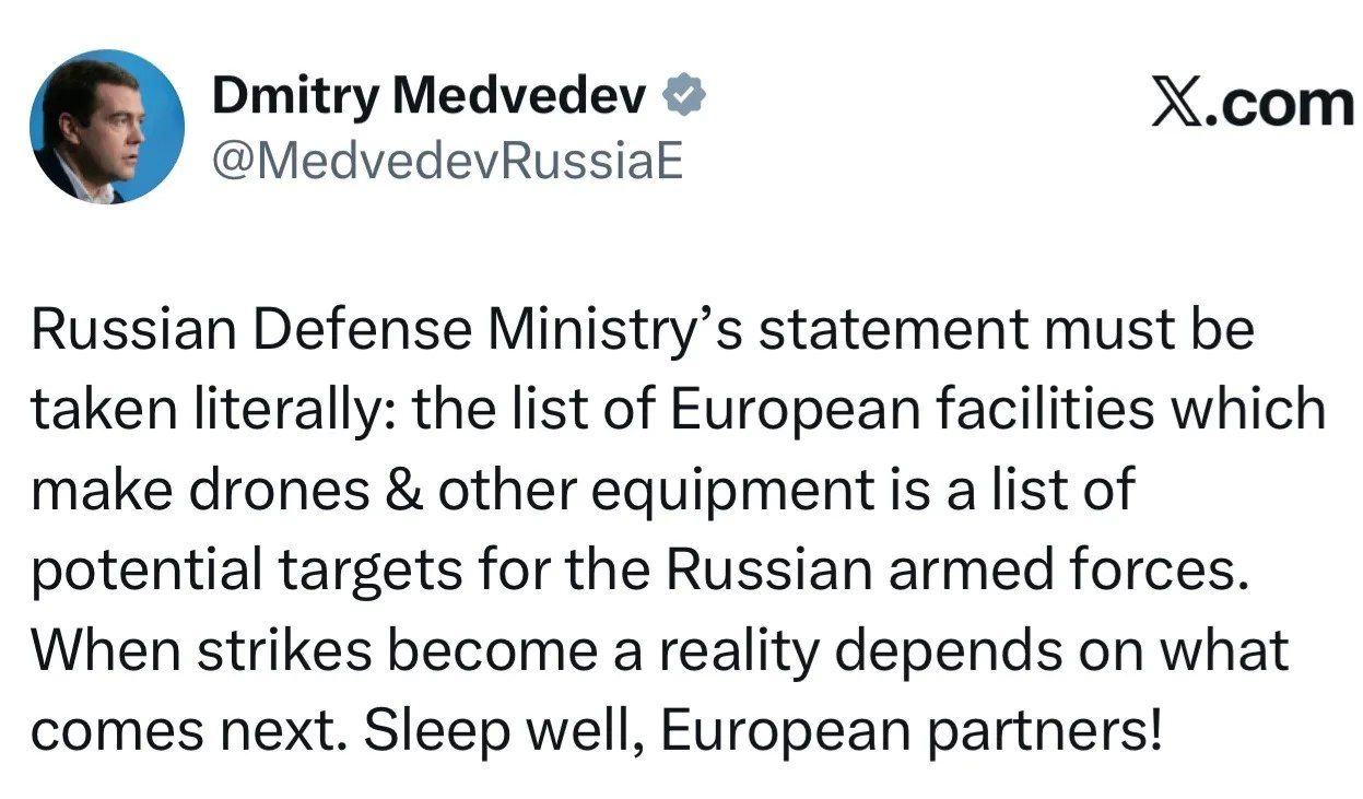 Заявление Министерства обороны России следует понимать буквально: список европейских предприятий, производящих беспилотники и другое оборудование, является списком потенциальных целей для российских вооруженных сил. Когда удары станут реальностью, зависит от того, что будет дальше. Спите спокойно, европейские партнеры!