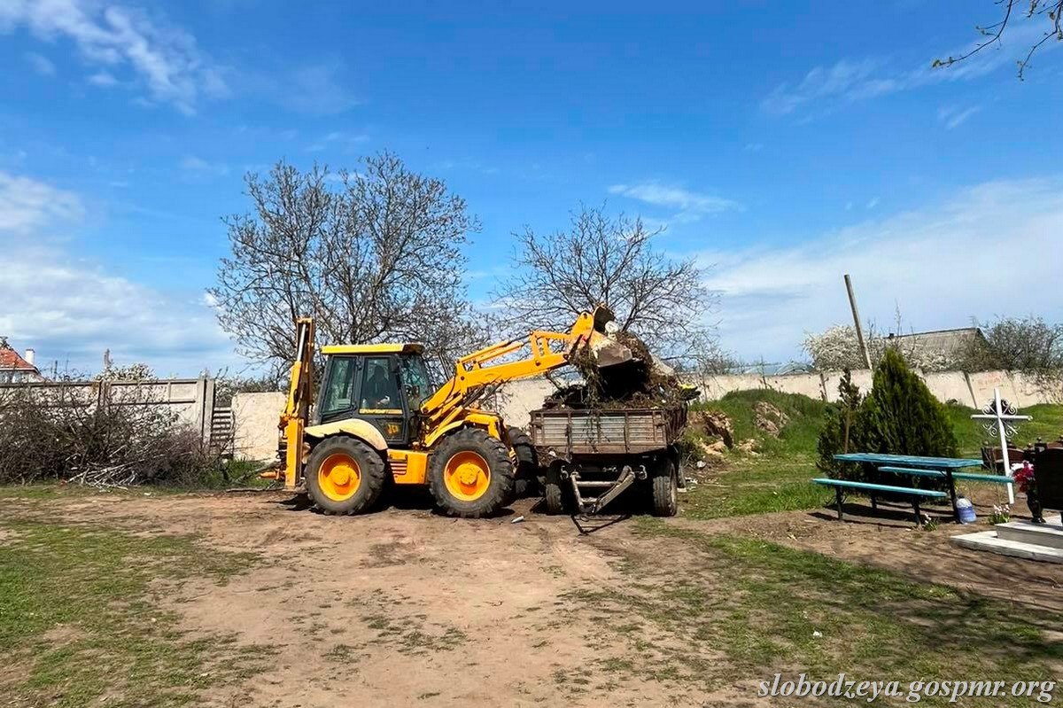 На видео – работы в селе Кицканы. Здесь ведётся уборка территории кладбища и прилегающих участков: вывозится мусор, который жители складировали в течение года, особенно активно – перед Радоницей.