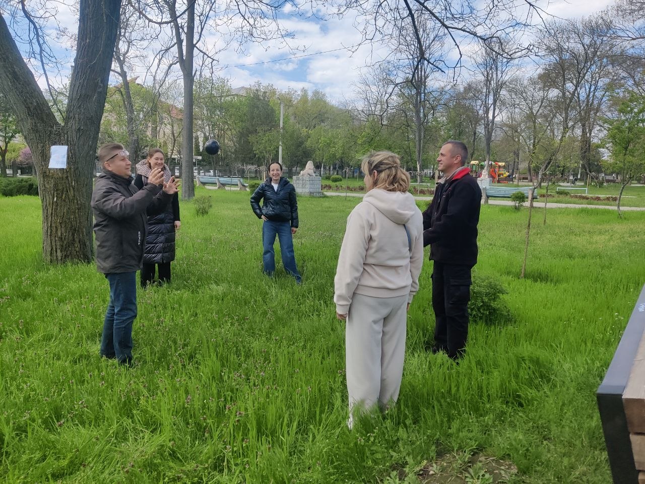 На фото — один из этапов квеста «Как туристы весну искали». По территории парка работали восемь станций. Участники разгадывали загадки, собирали экологические пословицы и поговорки, сортировали мусор, проходили полосу препятствий и выполняли другие задания.