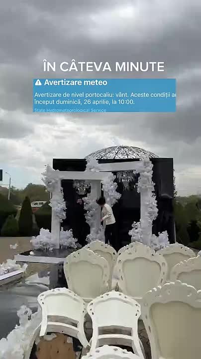 Свадебная церемония в Бендерах вчера сорвалась из-за непогоды. Ветер повалил стулья, организаторы держали декорации изо всех сил.