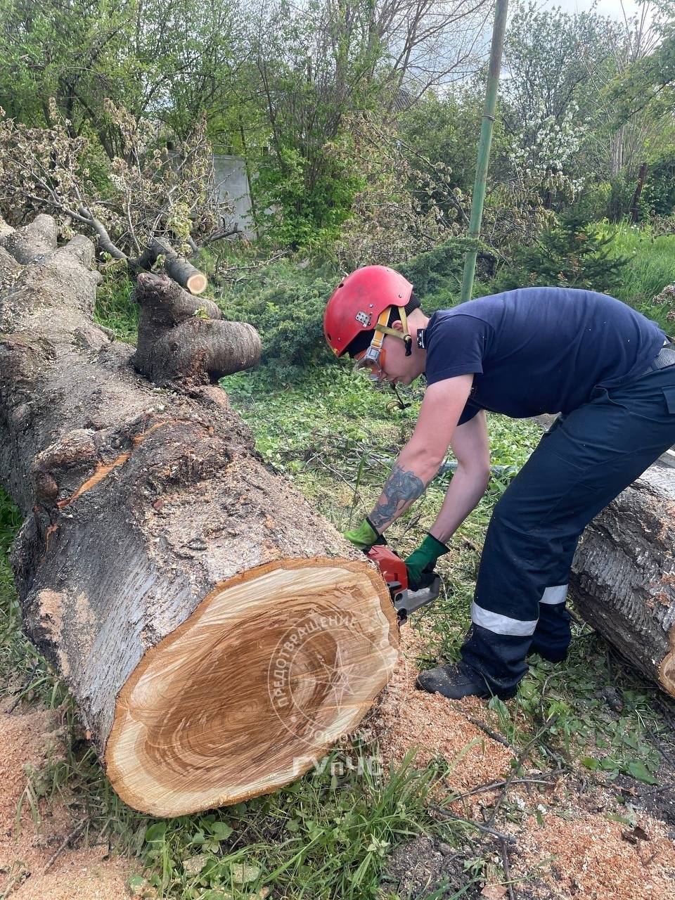 Дерево повалил недавний ураган. Спасатели около двух часов распиливали ствол и убирали ветки.