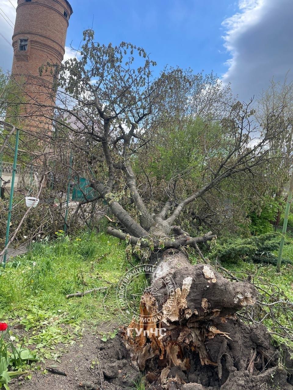 50-летняя черешня упала во дворе частного дома в Тирасполе