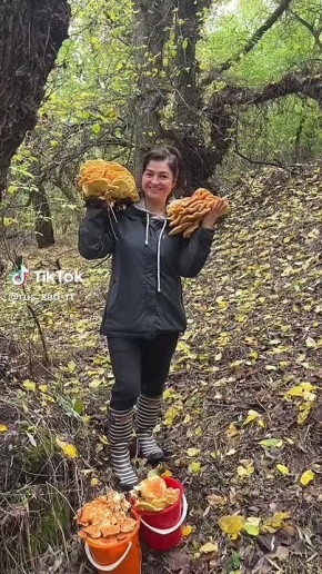 Гуляли в лесу и нашли дерево, где полным-полно трутовиков. Двух вёдер не хватило – пришлось приспосабливать пальто под мешок.В тик-токе спрашивают, где находится грибное место. Авторы видео отвечают: «В Приднестровье»
