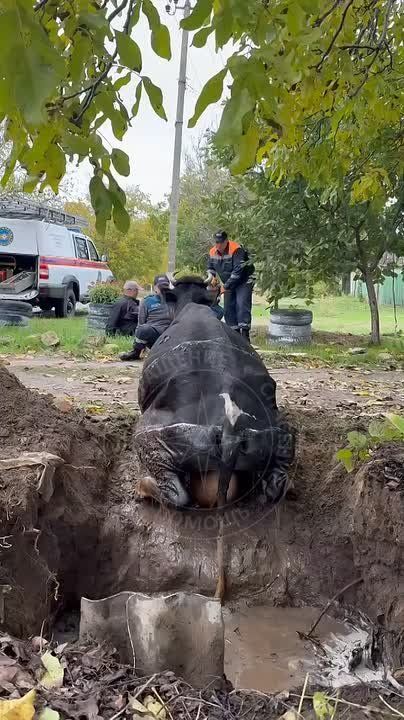 Животное испугалось машины, проломило шифер и упало в водопроводный колодец, повредив трубу. Колодец быстро начал заполняться водой.Спасатели разобрали металлический каркас, подкопали землю и с помощью лебёдки подняли бурёнку. К счастью, она...