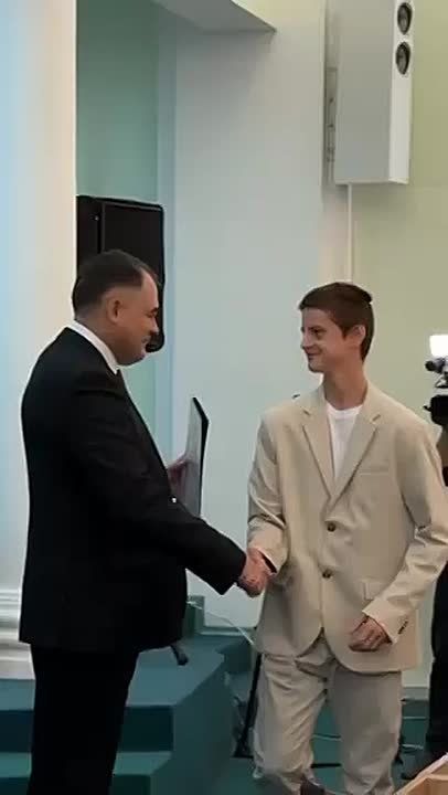 Тираспольчанин принимает поздравления и награду за высокие спортивные достижения. Глава Тирасполя Илона Тюряева вручает спортсмену благодарственное письмо Президента Вадима Красносельского.Егор Чертыковцев в этом году стал двукратным чемпионом...