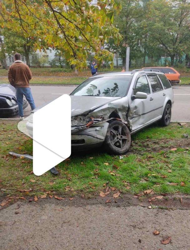 Авария случилась ночью. Оранжевая «БМВ» всмятку, «Фольксваген» вылетел на тротуар, пострадал и припаркованный «Мерседес».
