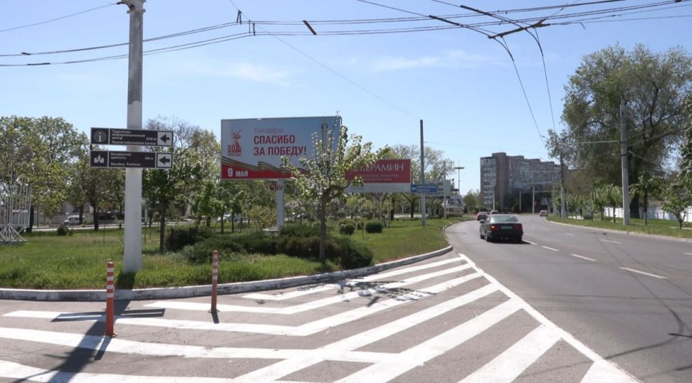 Бендеры преображаются к празднику. Красочные баннеры появились на центральных улицах, праздничные пилоны к 9 Мая также установили на площади Освобождения.