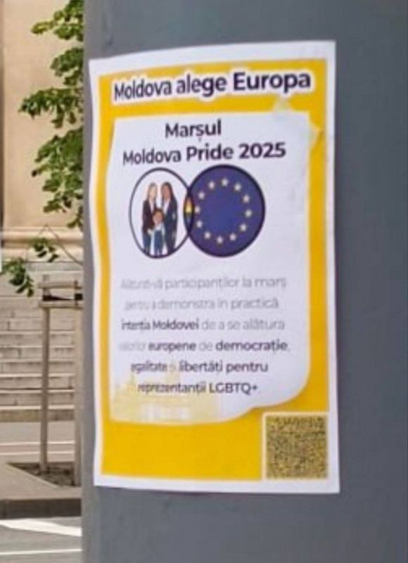 По всему центру столицы расклеены листовки с призывом прийти на марш «Молдова Прайд», запланированный на 15 июня. На них — фирменные цвета и стиль, подозрительно схожие с визуальной айдентикой PAS, а также QR-код, ведущий на страницу организаторов.