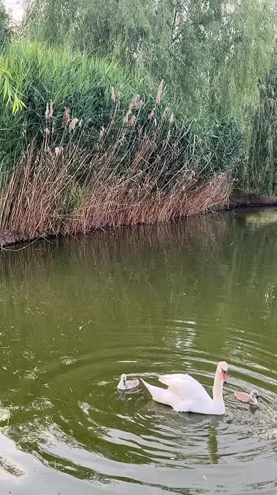 Оказывается, на озере в Екатерининском парке есть еще одна семья с малышами