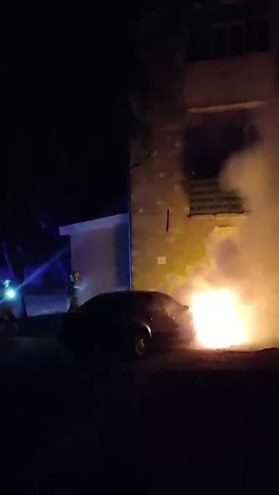 Ночью в Рыбнице во дворе многоэтажки загорелась машина. Весь двор не спал и смотрел, как работают пожарные.
