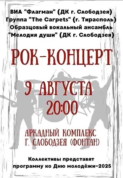 В Слободзее в день молодежи дадут рок-концерт. Выступят «The Carpets», «Флагман», «Мелодия души».