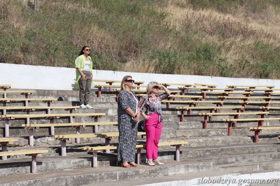 Сегодня, 19 августа, результат работы коллективов «Ритмик-данс» и «Ритмы века» оценила начальник Государственной службы по культуре ПМР Мария Кырмыз совместно с начальником районного управления культуры Елизаветой Пивовар. На центральном городском стадионе Слободзеи ребята продемонстрировали то, чему научились за время интенсивных репетиций.
