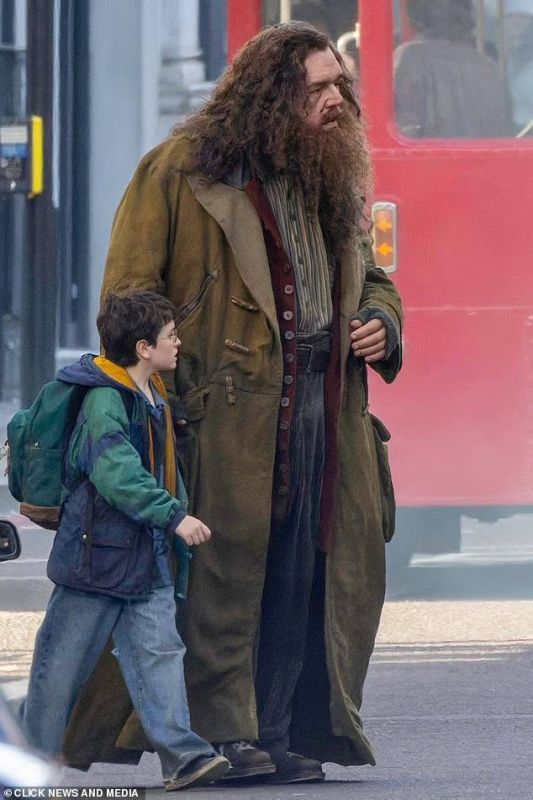 Съемки начались, актеры работают, а все желающие с хорошими камерами снимают и сливают в сеть съемочный процесс. На кадрах видно, как Гарри и Хагрид топают за магическими покупками в Косой переулок.