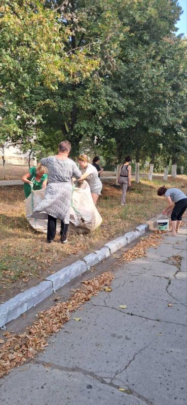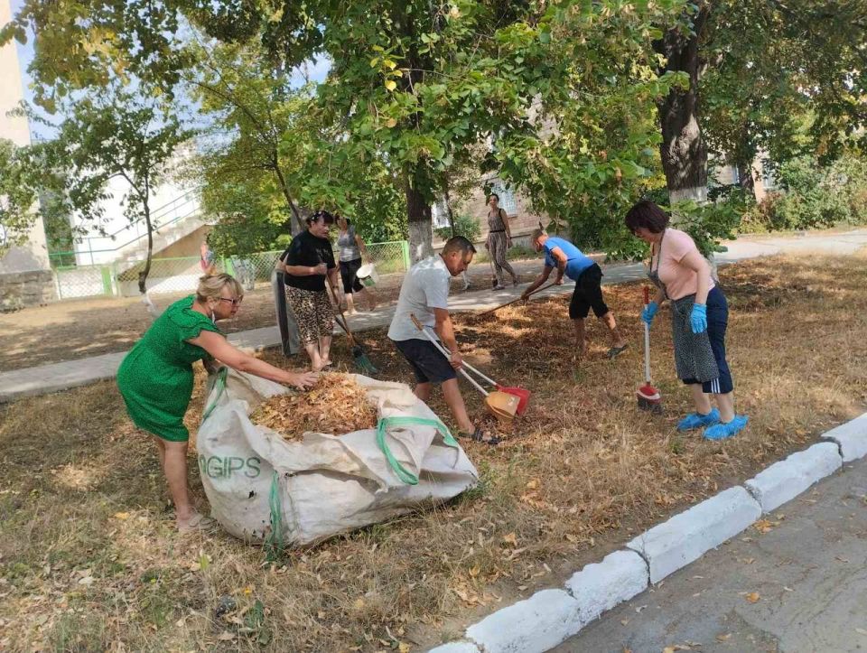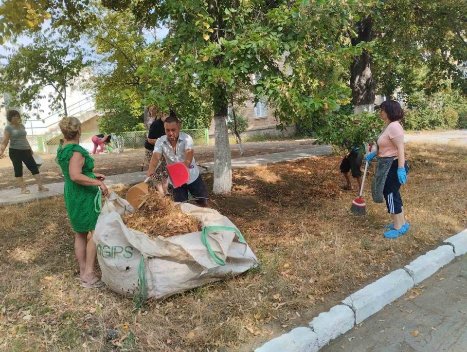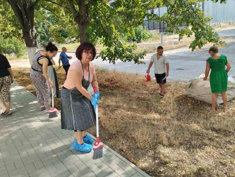 Работали дружно и с настроением — чтобы к новому учебному году территория была чистой и ухоженной.