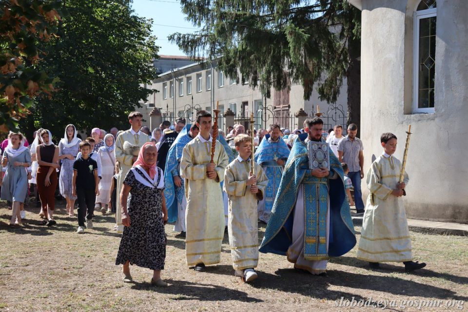 Торжественные мероприятия, посвящённые Храмовому празднику русской части города Слободзея, начались с праздничного богослужения в церкви Успения Пресвятой Богородицы и крестного хода.
