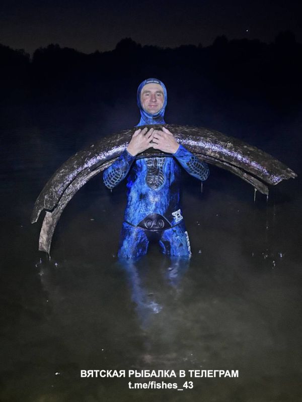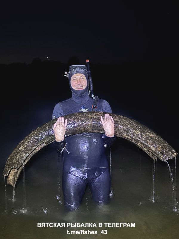 Подводные охотники нашли двухметровый бивень мамонта на дне реки в Кировской области. Только метровые экземпляры продаются за 1,3 млн рублей.