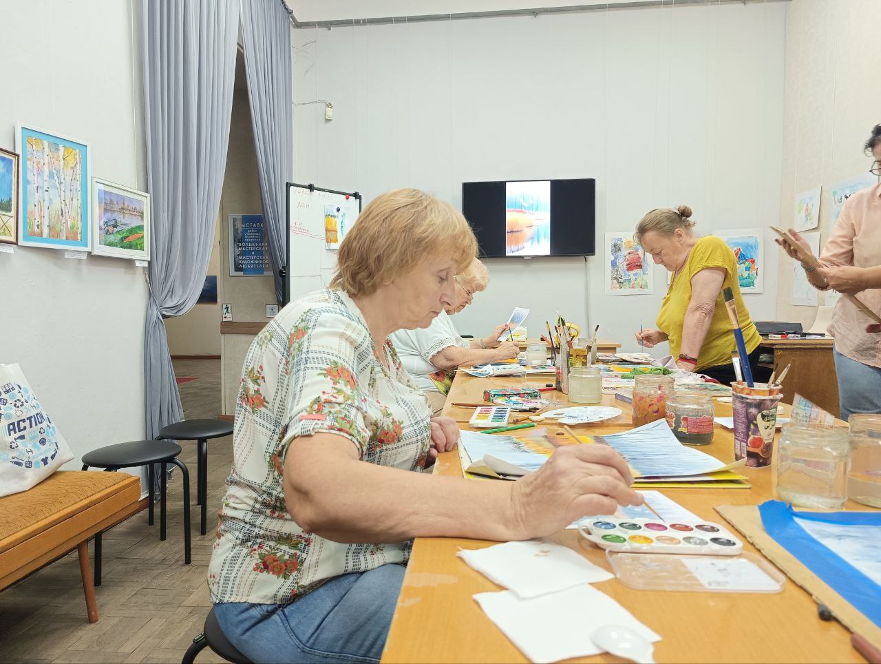 Взрослые любители живописи тоже экспериментировали, рисовали смешных барашков, фрукты, перелётных птиц, окно в мечту.