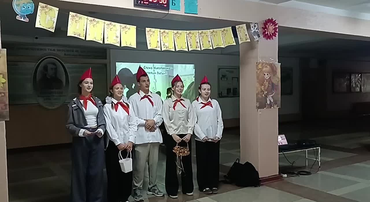 Старшеклассники 17-й столичной школы встречали своих учителей в пионерских галстуках и белых рубашках