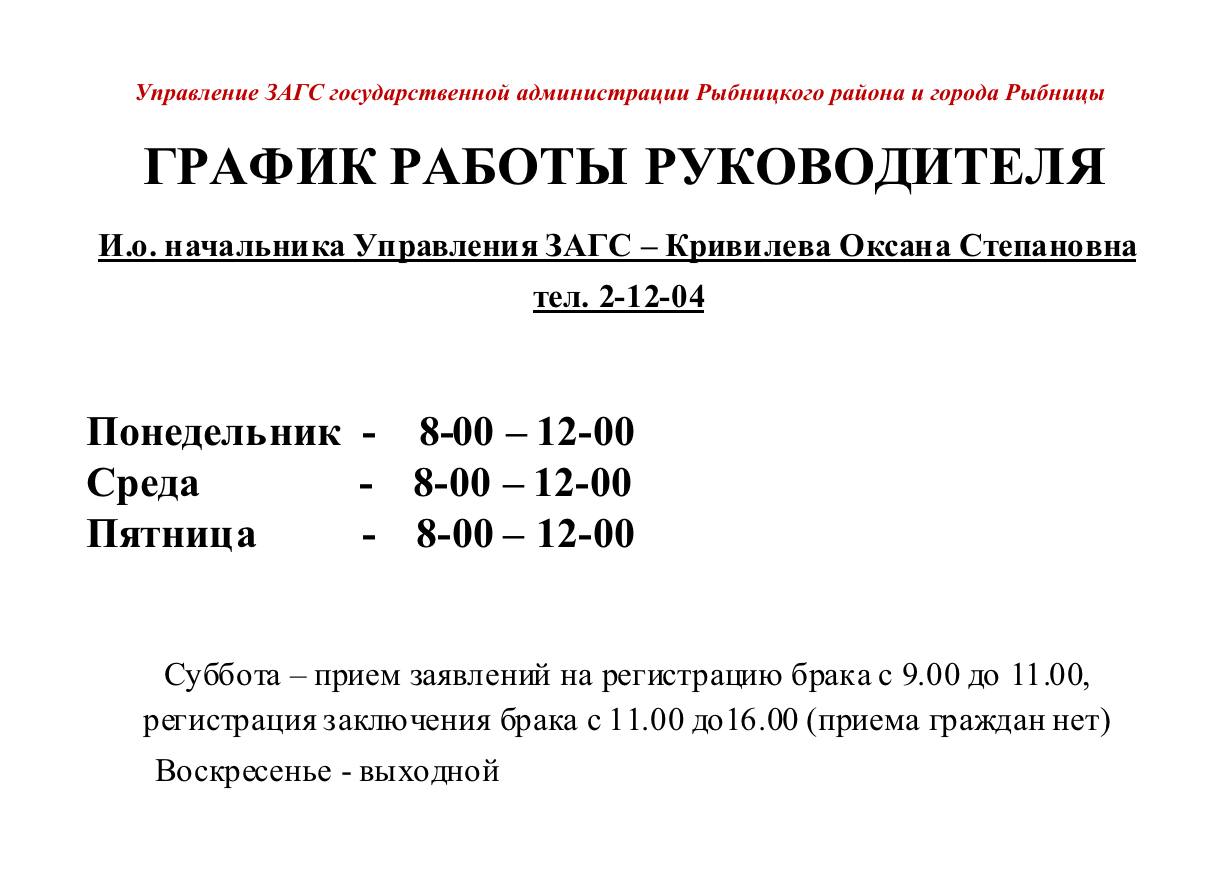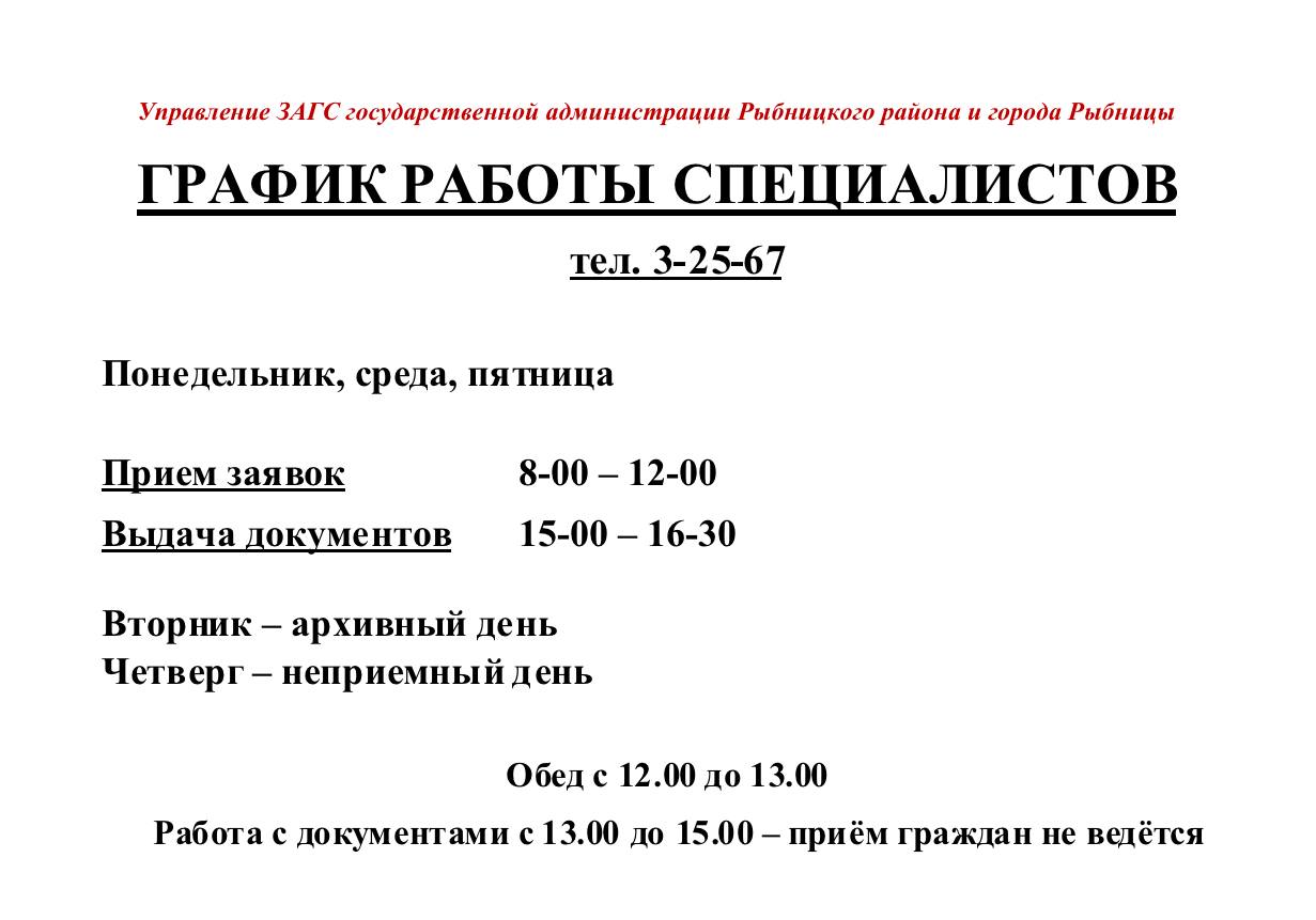 Рыбницкий ЗАГС изменил график работы