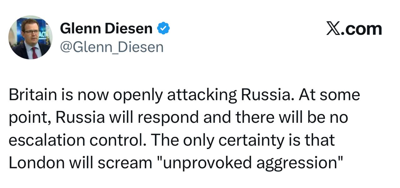 Британия теперь открыто нападает на Россию. Когда-нибудь Москва на это ответит, и не будет никакого контроля эскалации. Очевидно одно — Лондон будет кричать о ничем не спровоцированной агрессии.