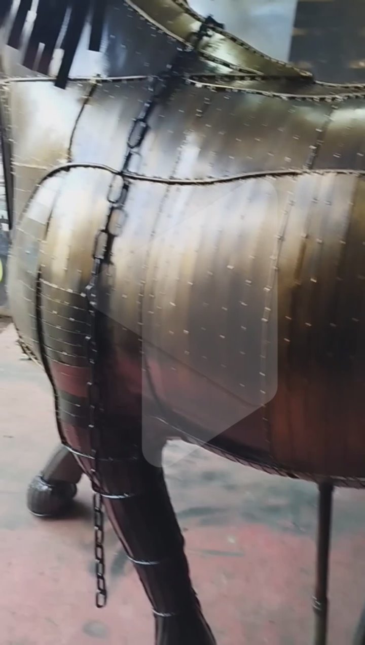 Над статуей работали 3 недели. Использовали старые автозапчасти. По размерам – как настоящий скакун.