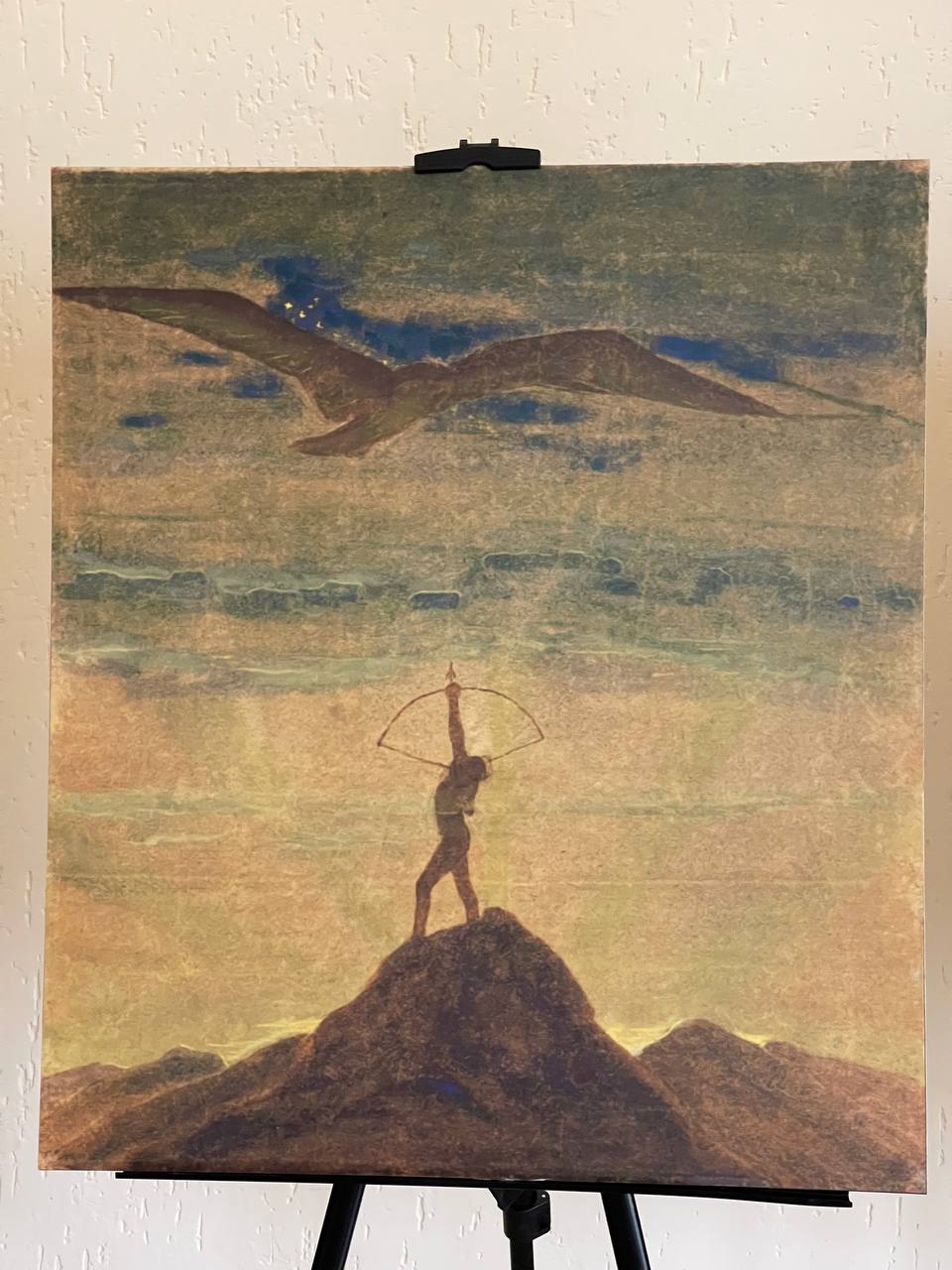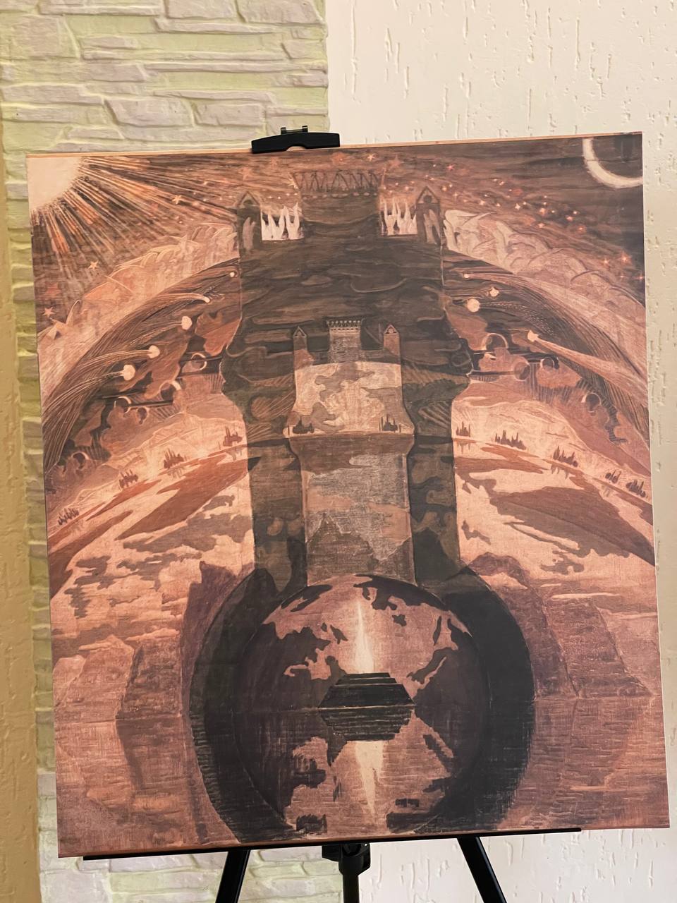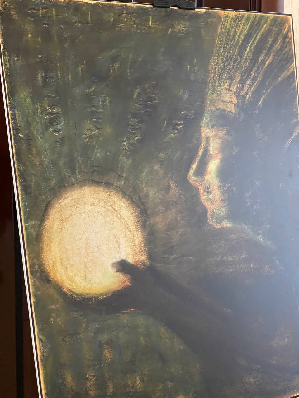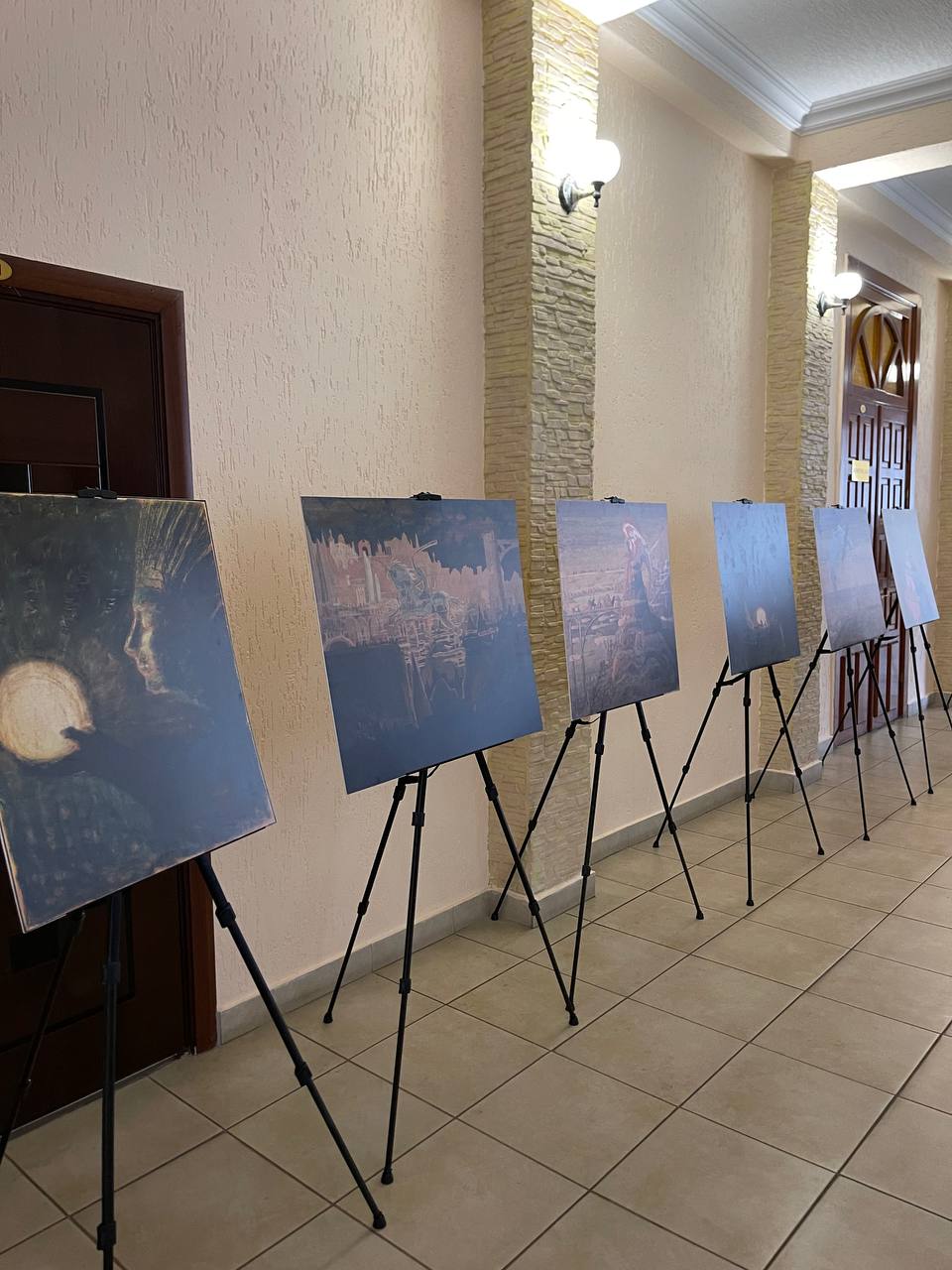 Там представили 13 репродукций картин литовского композитора и художника Николая Чурляниса. Он работал в стиле символизма. Его работы напоминают иллюстрации к сказкам.