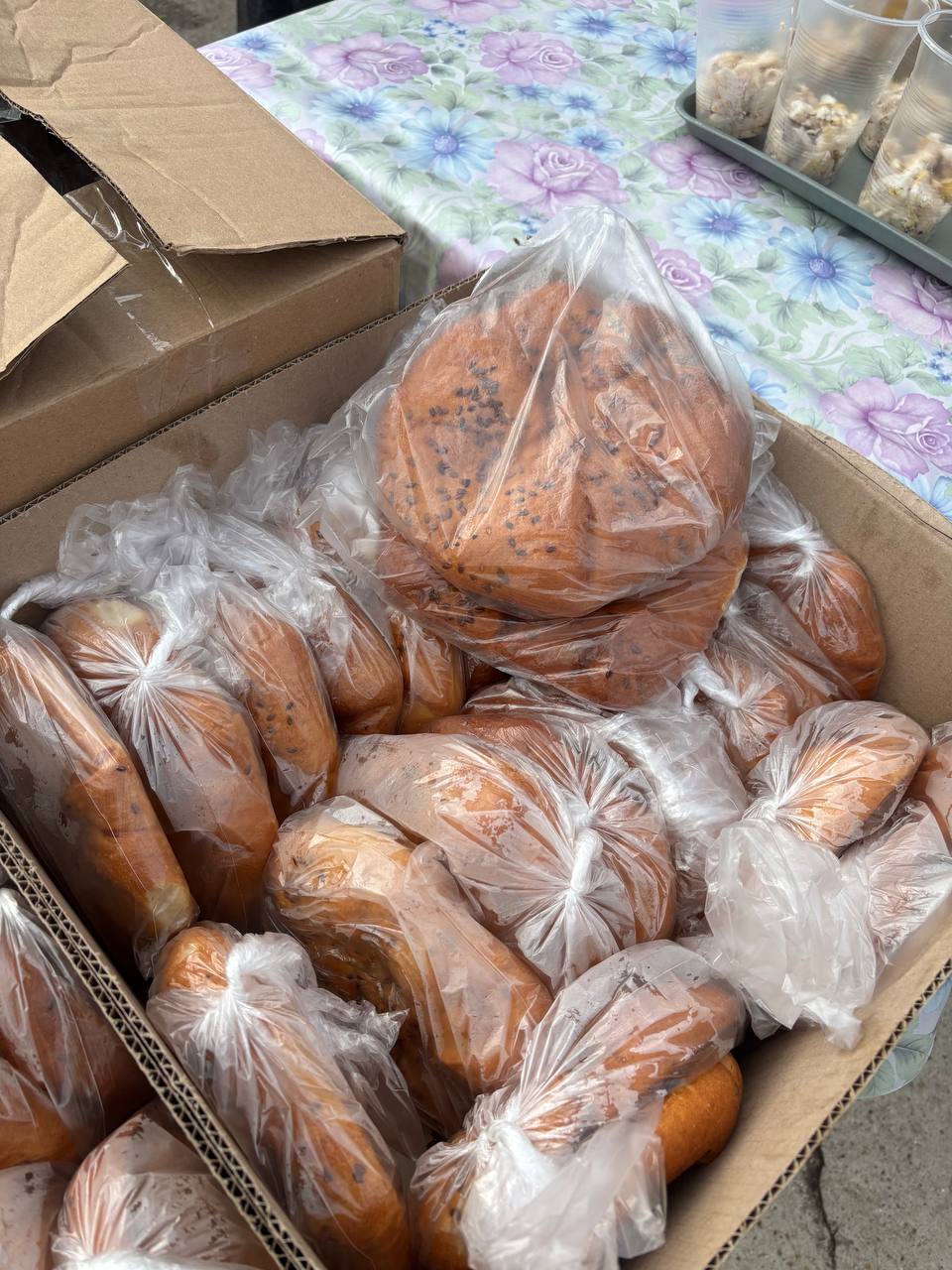 Ещё прихожан угощают ухой в стакане и плациндами.