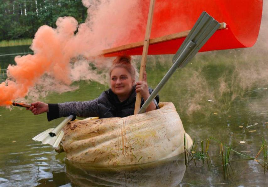 Россиянка Юлия Богданова отправилась вплавь по озеру в гигантской тыкве, которую вырастила сама. Оригинальным «судостроением» девушка занимается не первый год. В прошлом сезоне уже выходила на воду на 226-килограммовой тыкве «Дуняша». В этот раз вес овоща-лодки 221 кг. Судно назвала «Емеля».
