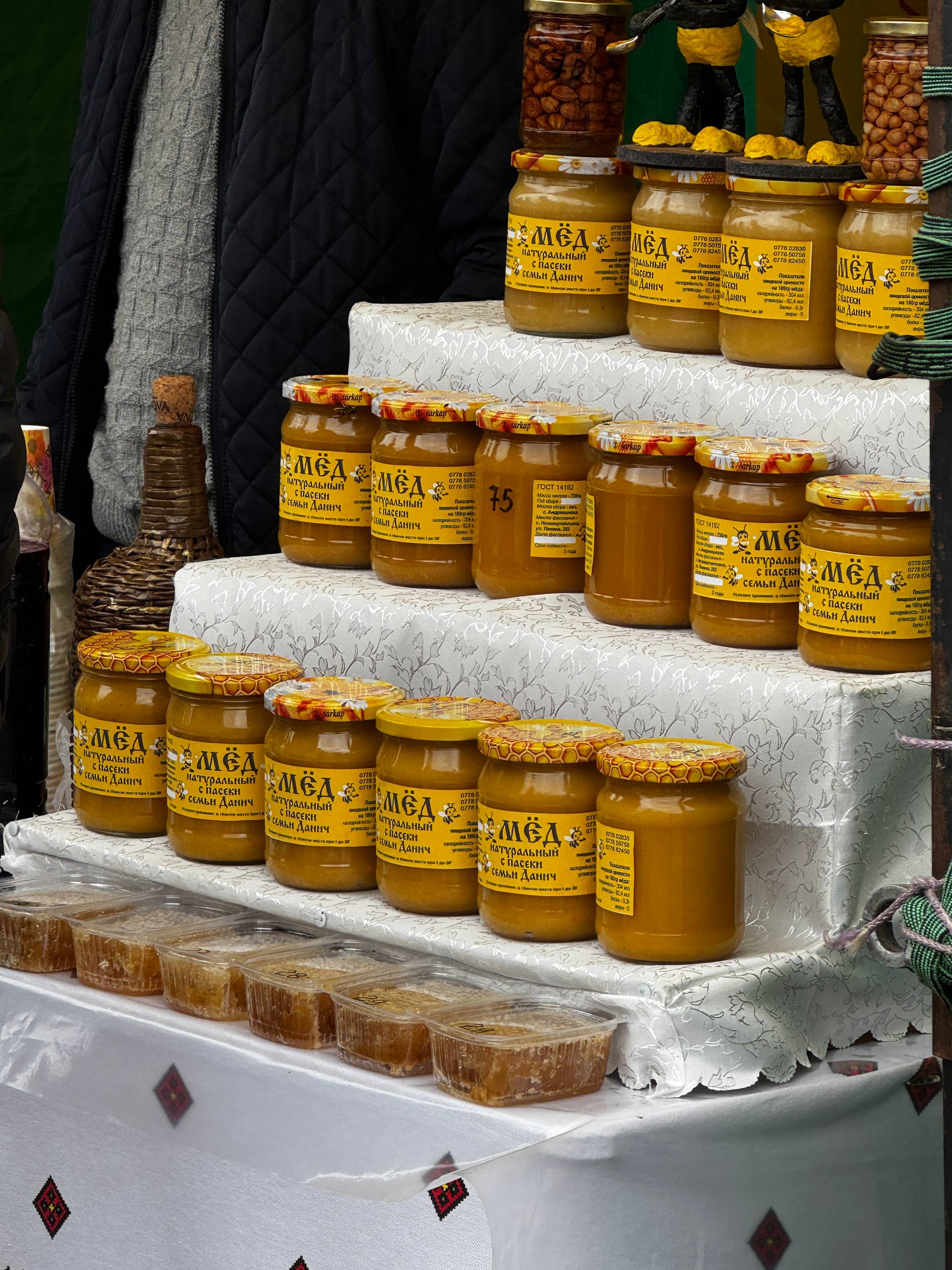 Разнообразие медовой продукции поражает. Липовый и майский мёд, прополис, перга, пыльца и даже воск.