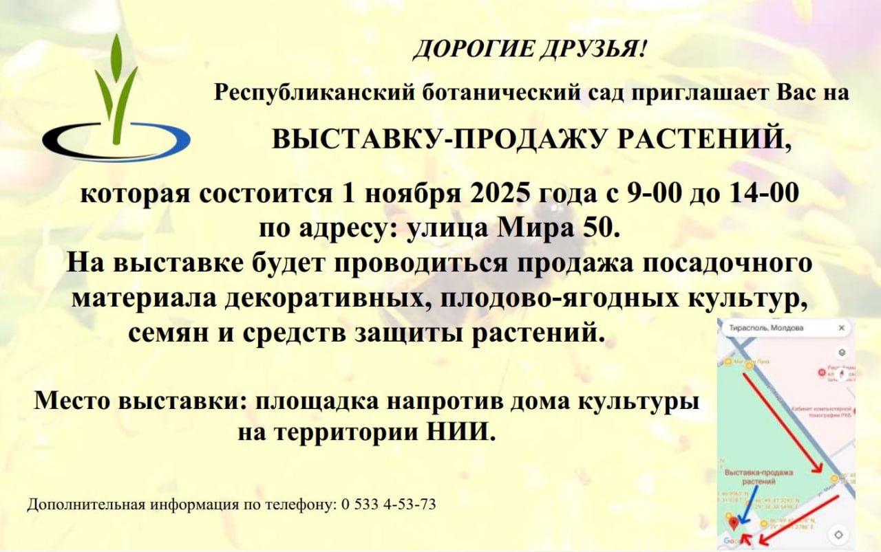 1 ноября 2025 года на базе ГУ «Республиканский ботанический сад» пройдет выставка-продажа декоративных и плодово-ягодных культур, семян и средств защиты растений.