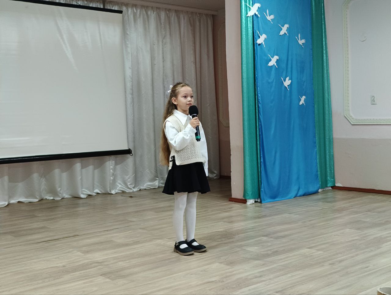 Впервые в «Радуге» этот день отметили концертной программой: прозвучали стихи, песни и видеоролики о войне. Артистки коллектива «Ювента» представили танец «Журавли», а зрители держали бумажных птиц, сделанных детьми и педагогами.