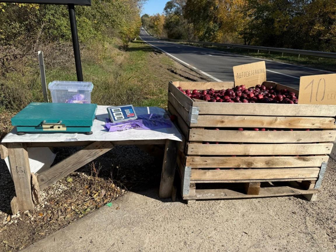 Вдоль молдавских дорог появились яблочные кассы самообслуживания.