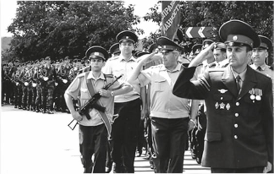 Вадим Красносельский возглавляет колонну милиционеров Бендер, 2003 год