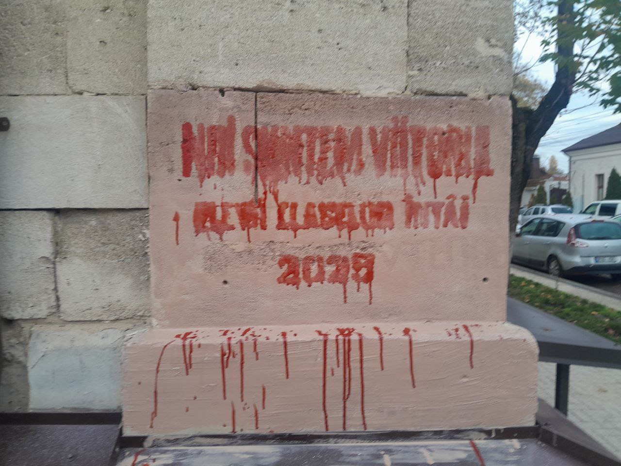 Ранее неизвестные уже дважды закрашивали текст и снимали защитное стекло. На этот раз поверх надписи появился новый трафарет на румынском языке: «Мы будущие ученики начальных классов 2025».